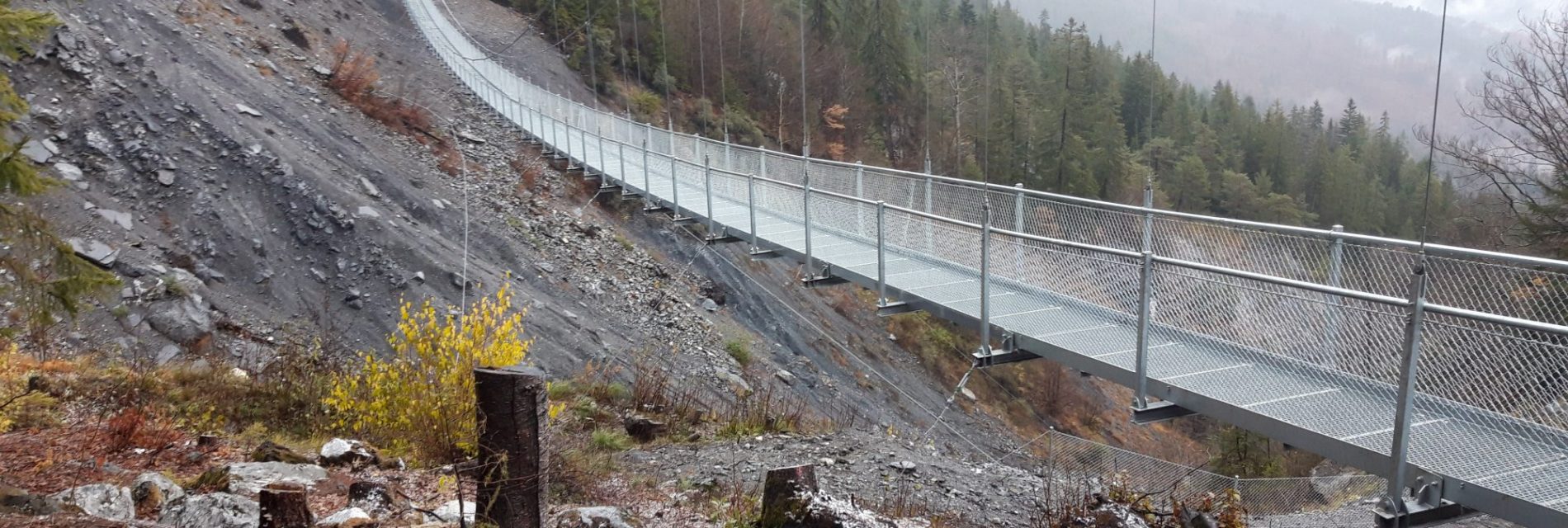 Construction d’une Tyrolienne avec poulie freinée de 1400m de longueur pour 300m de dénivelé.