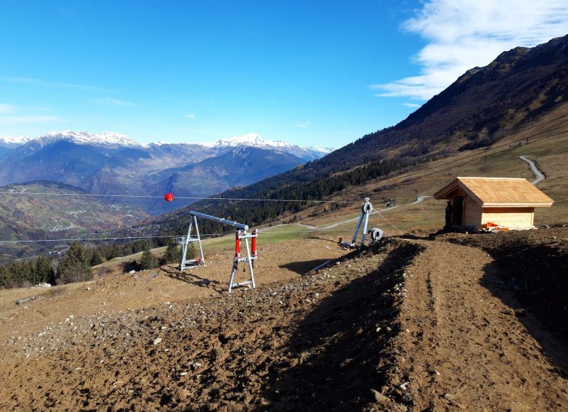 Construction d’une Tyrolienne avec poulie freinée de 1400m de longueur pour 300m de dénivelé.