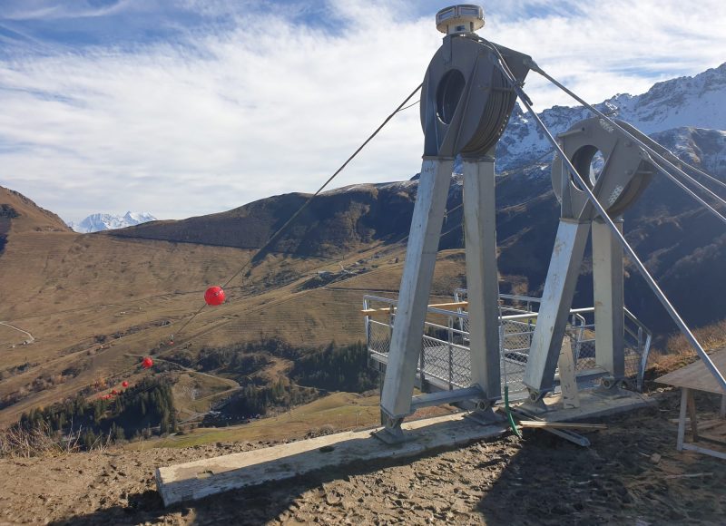 Construction d’une Tyrolienne avec poulie freinée de 1400m de longueur pour 300m de dénivelé.
