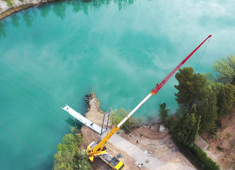 Nous sommes fiers de vous présenter notre petite dernière, la passerelle de l’Escale. Elle permettra, dans le cadre d’un aménagement écotouristique, de relier les communes de Volonne et de Château Arnoux Saint Auban par un joli trait d’union au dessus de la Durance.