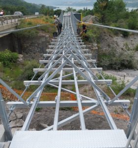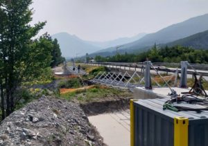 Dans le cadre de l’aménagement de la voie verte sur la périphérie du lac de Serre Ponçon, la passerelle de Crots permet de franchir le torrent du Boscodon en parallèle de la route nationale.