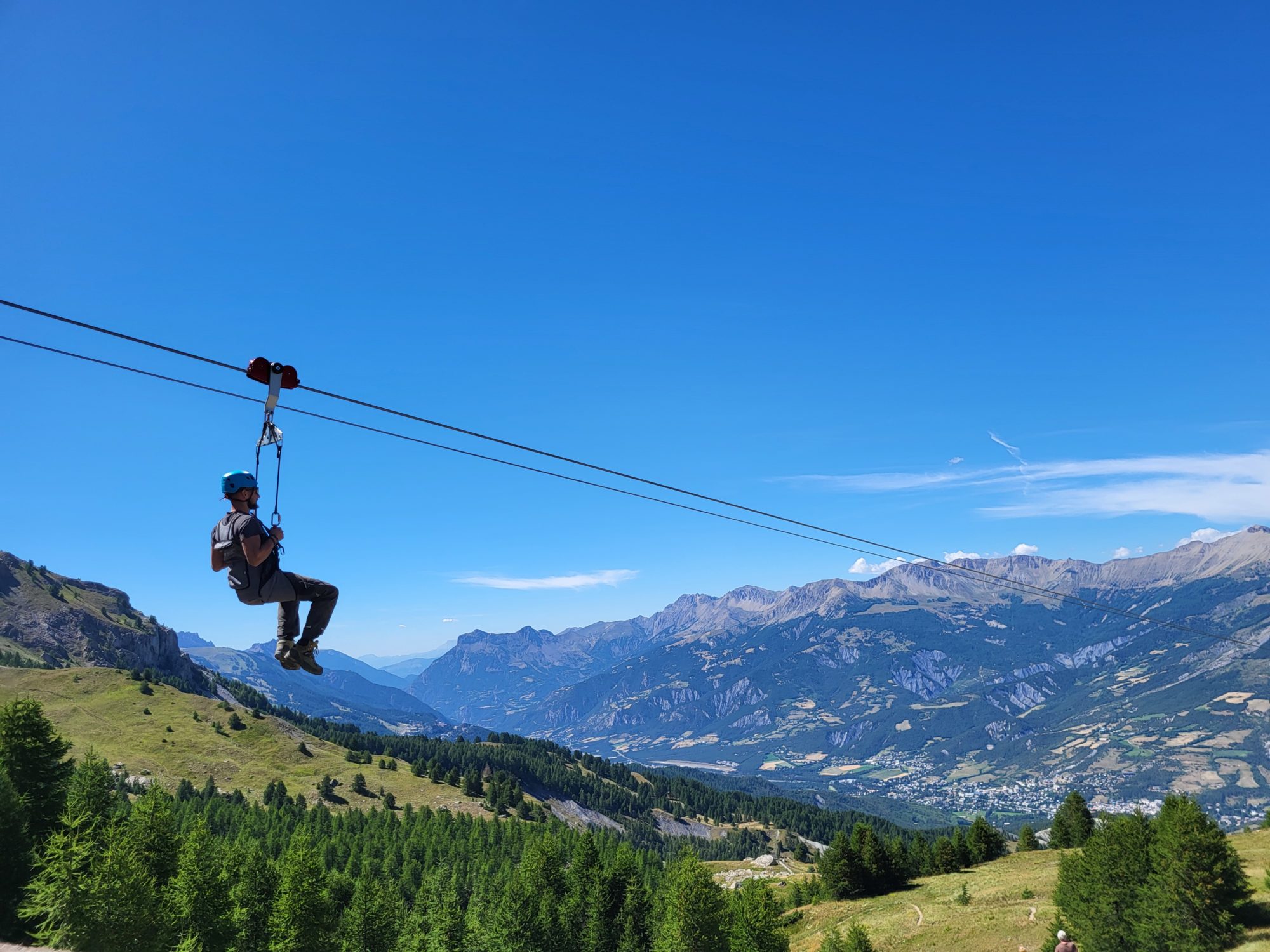 La nouvelle passerelle himalayenne, d’une longueur de 60 mètres, réhabilite une ancienne ligne de chemin de fer en voie verte. Pour une intégration harmonieuse, les culées de l’ancien ouvrage ont été conservées.